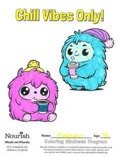At Nourish Meals on Wheels, we believe small acts of kindness can make the biggest difference. Through our Coloring Kindness program, clients receive cheerful, hand-colored cards and notes that brighten their day and remind them they are not alone.